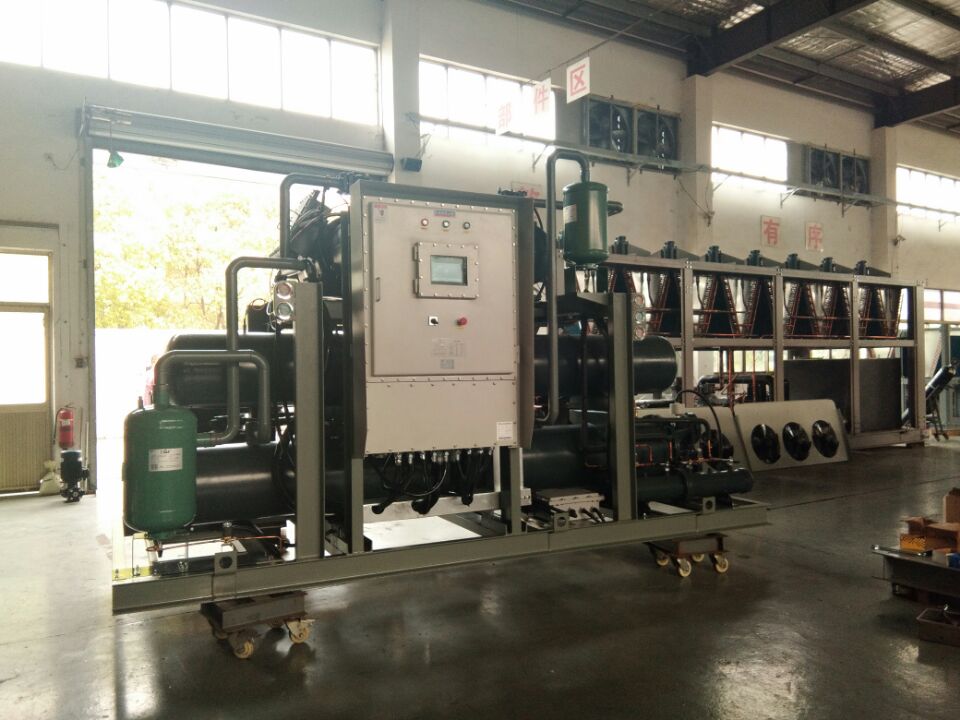 制藥業用超低溫復疊式冷凍機組用于制藥中合成,水解,酯化,醚化等需要控溫的工藝。