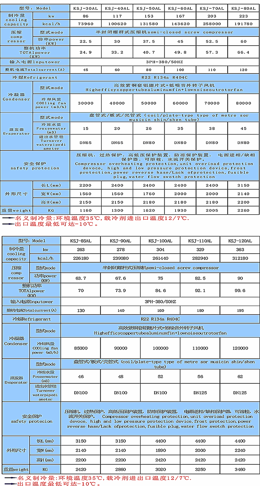 醫(yī)藥行業(yè)用螺桿式冷水機(jī)組參數(shù)