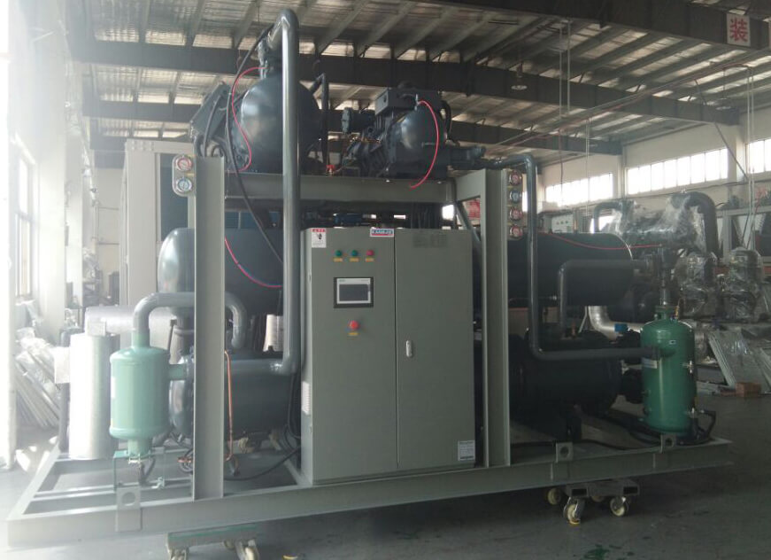 2.二元復疊低溫冷凍機組:采用二元復疊制冷系統,由高溫級(R404A/R22)低溫級(R23/R13)組合而成,可提供-40℃- -85℃超低溫工藝冷源;機組制冷量范圍在1kw~200kw;